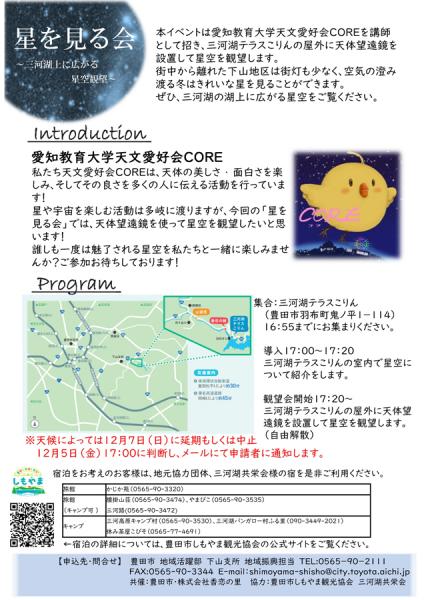 豊田市 公式サイト「星を見る会 ~三河湖上に広がる星空観察~」詳細ページ