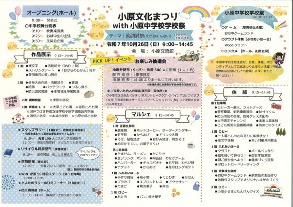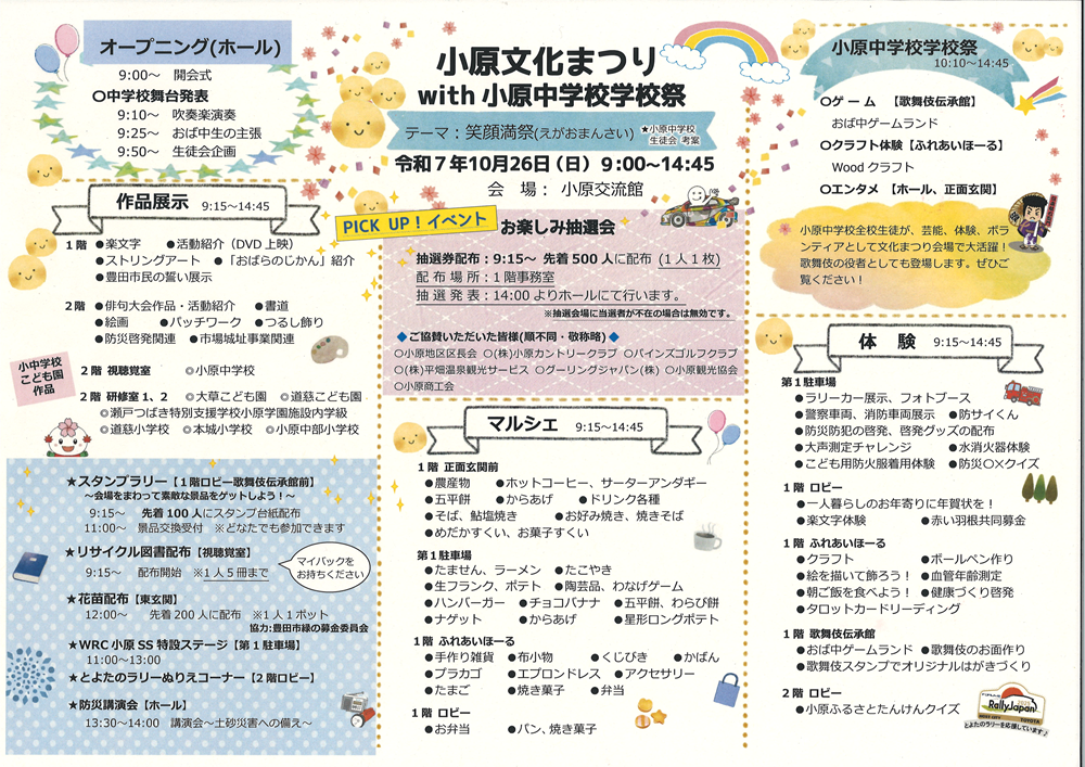 令和7年度小原文化まつりは、小原中学校学校祭との共同開催により行います。小原地区の魅力とパワーが大集結。