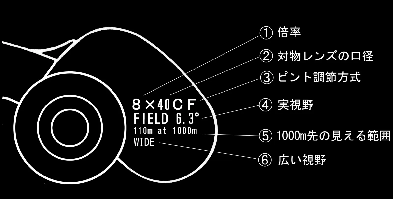 (2)口径:対物レンズの直径。40は40mmのこと