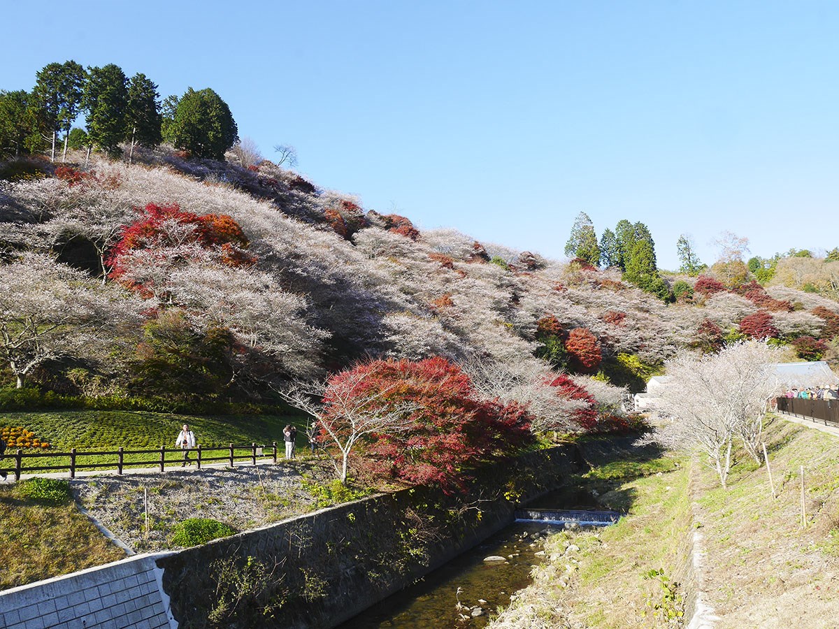 ดอกซากุระบานสะพรั่ง เป็นหนึ่งในสัญลักษณ์แห่งประเทศญี่ปุ่น อย่างไรก็ตาม ท่านสามารถชมดอกซากุระได้เป็นระยะเวลาสั้นๆ ในช่วงฤดูใบไม้ผลิเท่านั้น แต่ที่เขตโอบาระในเมืองโทโยตะแห่งนี้ ท่านสามารถชมซากุระได้ถึงปีละสองครั้ง! ชิกิซากุระเป็นซากุระพันธุ์หายากในเขตโอบาระ ซึ่งจะบานครั้งแรกในฤดูใบไม้ผลิ และอีกครั้งหนึ่งในฤดูใบไม้ร่วง พร้อมกับมวลแมกไม้ที่พร้อมใจกันเปลี่ยนสีสันอย่างงดงาม โดยในบริเวณภูเขาซะโตะยะมะนั้น มีซากุระพันธุ์นี้อยู่กว่า 10,000 ต้น และที่บริเวณจุดชมวิวอันเลื่องชื่ออย่างเซ็นมิชิกิซากุระโนะซาโตะนั้น ชิกิซากุระกว่า 1,200 ต้นจะพร้อมใจกันผลิดอกสีชมพูอ่อนตัดกับใบเมเปิลและใบไม้ฤดูกาลอื่นๆ ที่เปลี่ยนเป็นสีแดง ส้ม และเหลืองสดใส เกิดเป็นทัศนียภาพอันน่าประทับใจที่หาชมได้ยากและจะติดตราตรึงใจผู้ได้พบเห็นอย่างไม่รู้ลืม