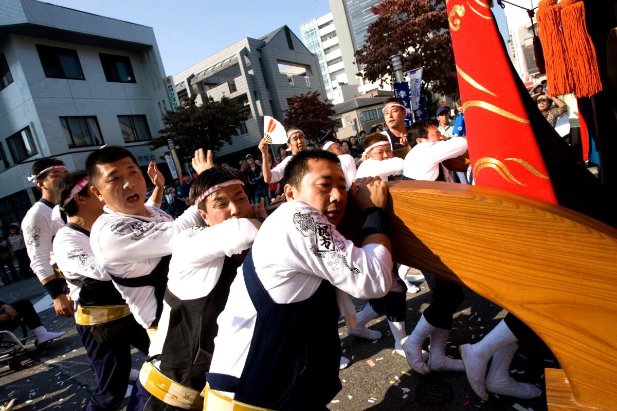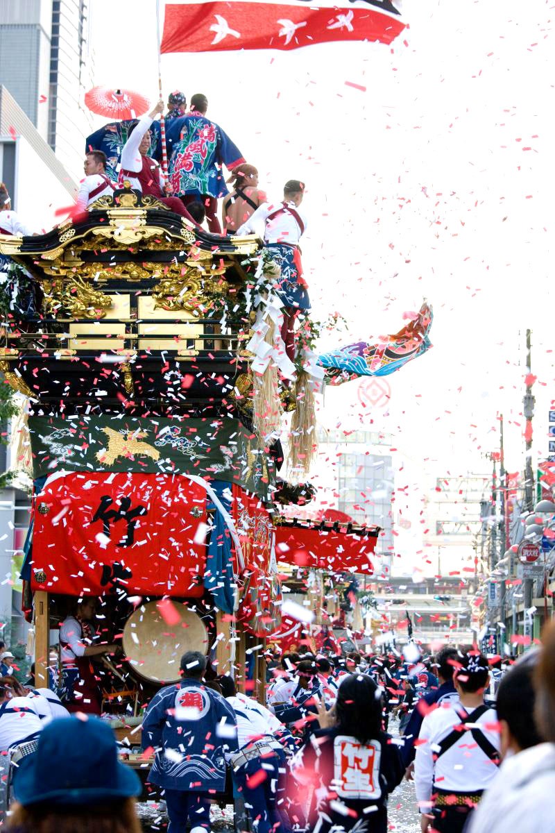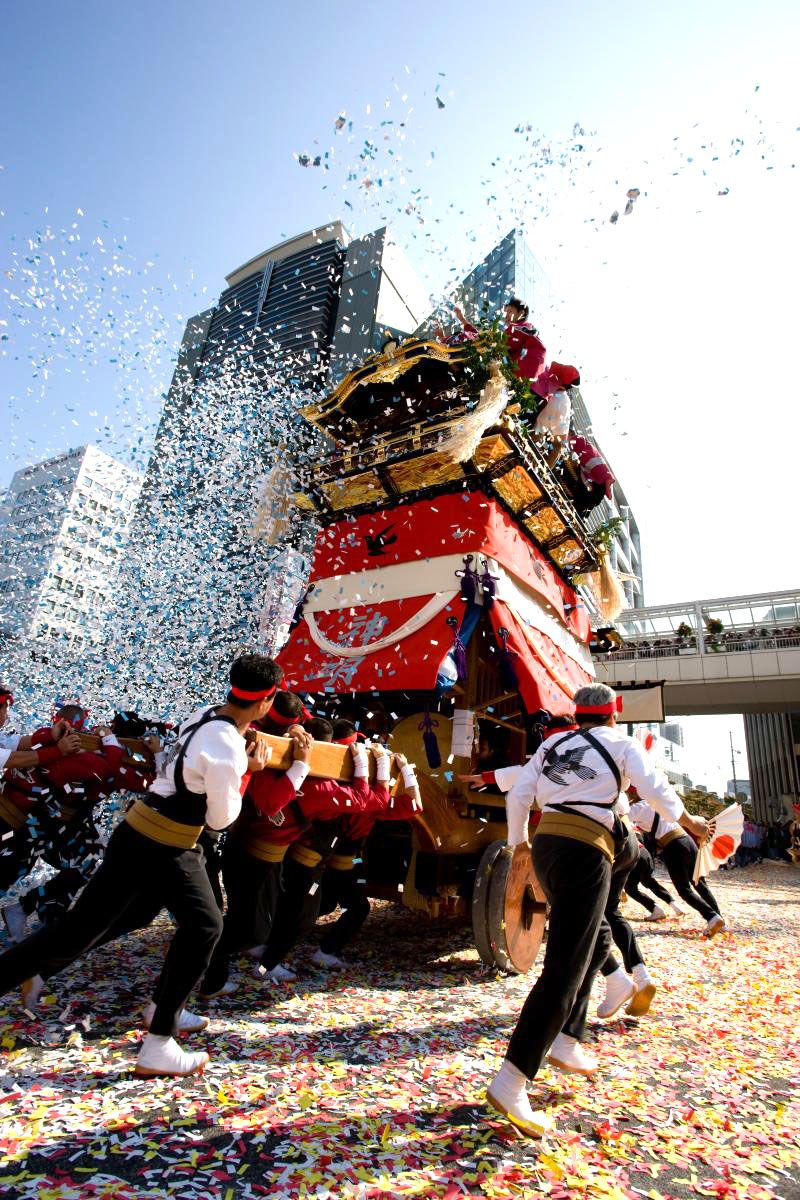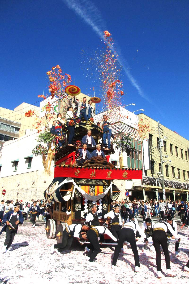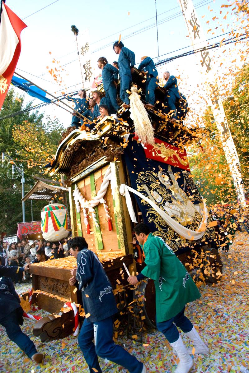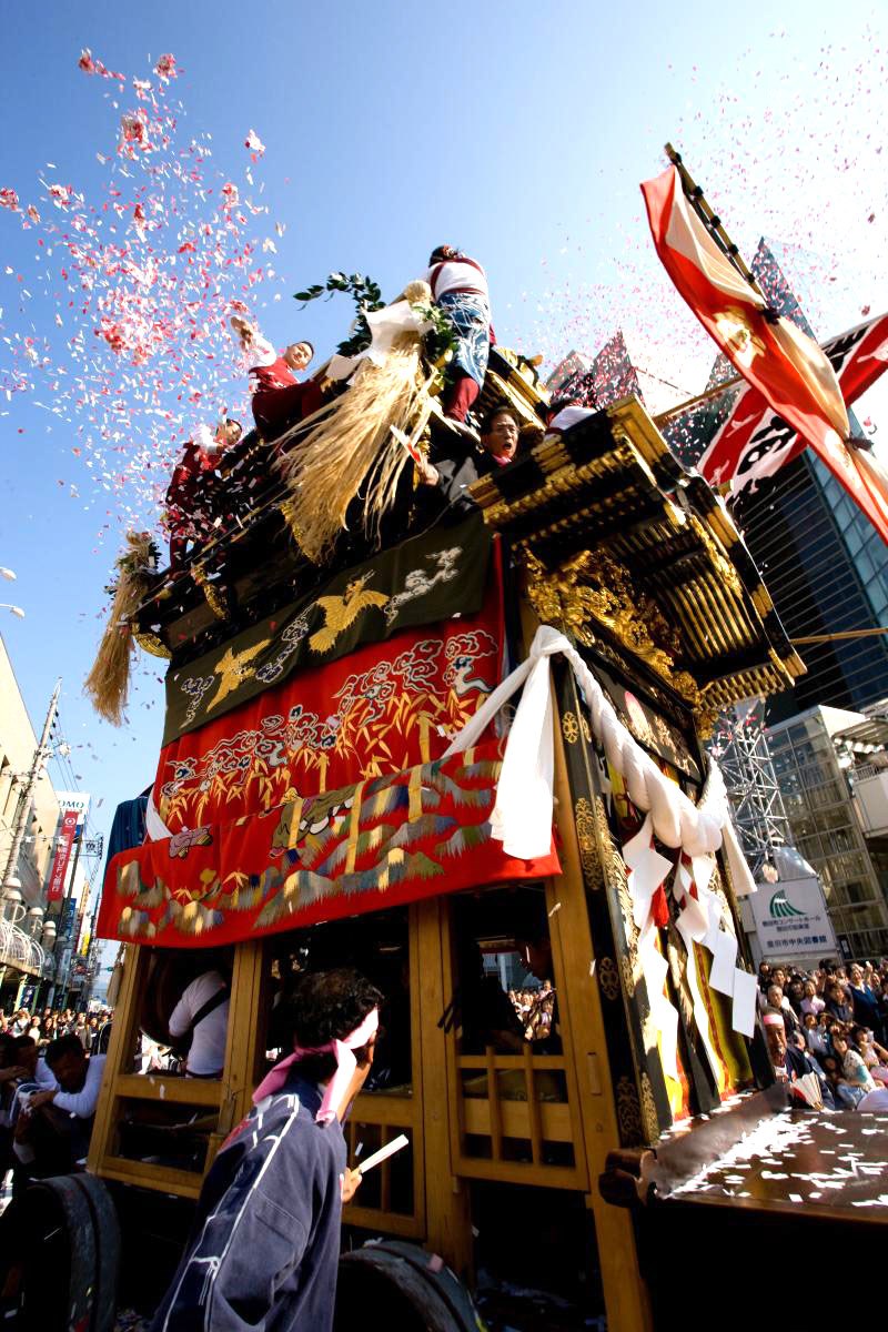 ศาลเจ้าเคลื่อนที่เหล่านี้มีเวทีขนาดเล็กสำหรับสำหรับการแสดงต่างๆ ซึ่งมีการแสดงจำนวนมากที่แสดงโดยเด็กๆ รวมถึงการแสดงคาบูกิ และยังสามารถสนุกไปกับการแสดงตลกแบบดั้งเดิมเคียวเก็นได้อีกด้วย ขณะที่มีการแสดงของนักดนตรีและนักเต้นของงานประเพณีแบบดั้งเดิม รถแห่เหล่านี้จะถูกดึงและผลักไปตลอดเส้นทางในโทโยตะด้วยกลุ่มชาวเมืองจำนวนมากที่แต่งตัวสดใสด้วยชุดประจำเทศกาล พร้อมเปล่งเสียงร้อง "โฮอิซซะ!โฮอิซซะ!" ล้อไม้ขนาดใหญ่และเพลาถูกสอดผ่านรูในโครงรถหลักโดยไม่มีพวงมาลัยบังคับ ดังนั้นเมื่อขบวนแห่ถึงทางเลี้ยว กลุ่มผู้ชายต่างต้องช่วยยกรถแห่หนักหลายตันนี้ขึ้นสองล้อแล้วลากต่อไปยังทิศทางที่ต้องการ ซึ่งแตกต่างจากการหักเลี้ยวอย่างรวดเร็วในปัจจุบัน การแสดงเหล่านี้มีความเร็วที่น่าตื่นตาตื่นใจ และด้วยกระดาษสีที่โปรยปรายลงสู่ผู้ชมก็ทำให้บรรยากาศมีชีวิตชีวาด้วยเสียงร้องแห่งความสุข เสียงเชียร์ และเสียงปรบมือจากทั้งเด็กและผู้ใหญ่ โดยเฉพาะอย่างยิ่งเหล่าเด็กๆ ต่างดูชื่นชอบการเล่นกองกระดาษสีขนาดยักษ์ที่โปรยออกมาจากรถแห่ อย่าลืมเคลียร์พื้นที่ในกล้องถ่ายรูปให้พร้อม เพราะท่านจะต้องถ่ายภาพความยิ่งใหญ่ของเทศกาลนี้แทบทุกวินาที!
