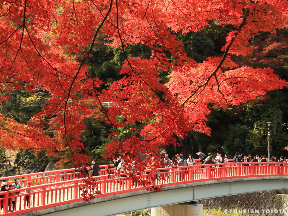 - นถึงปลายเดือนพฤศจิกายนเป็นประจำทุกปี ที่นี่เป็นจุดชมใบไม้เปลี่ยนสียอดนิยมเพราะขับรถยนต์จากภายในเมืองนาโกย่าไปได้โดยใช้เวลาไม่ถึง 1 ชั่วโมง ความงามของธรรมชาติจากหินขนาดใหญ่ที่ถูดกัดกร่อนด้วยกระแสน้ำเชี่ยวกรากและต้นไม้ที่ย้อมไปด้วยสีแดงสีเหลืองเป็นความสวยงามที่หาไม่ได้ที่อื่น