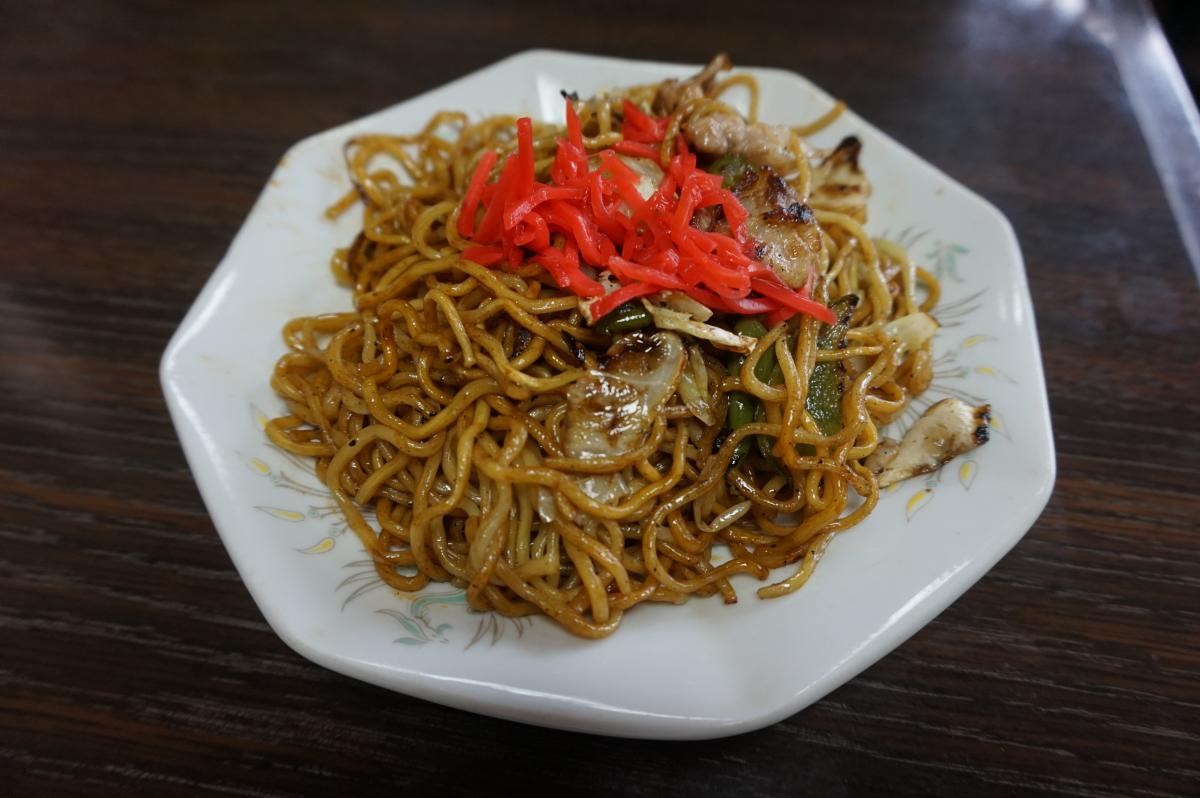 ▲在小渡町吃飯休息。尊重店主的願望,不公佈店鋪的名字,這裡的五平餅100日元,炒麵350日元,非常便宜!