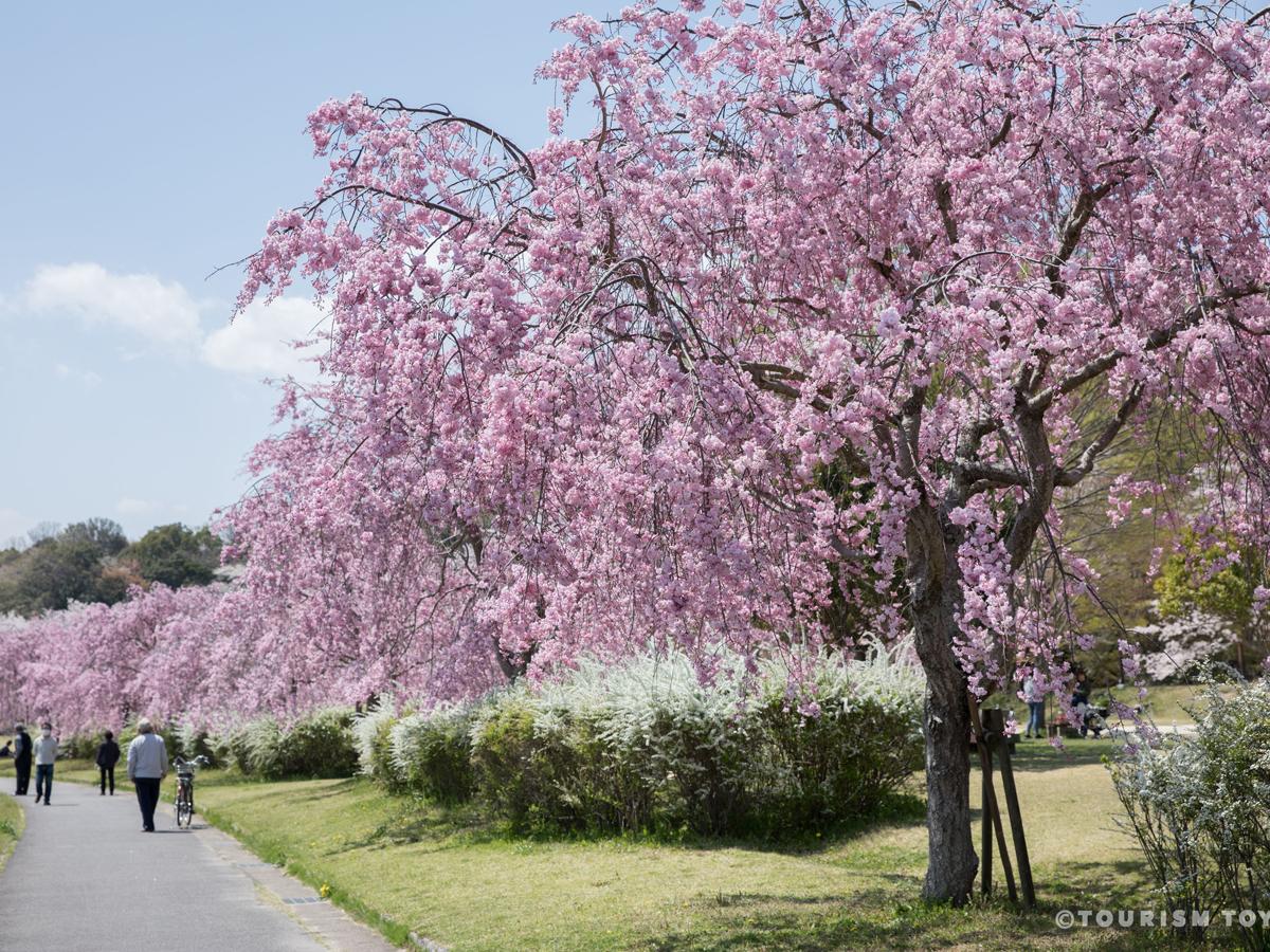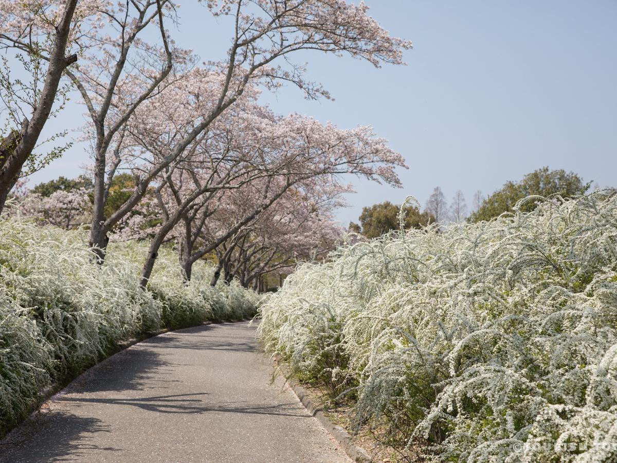 愛知縣綠化中心的賞櫻風景,是沿著日本庭園的散步道長約200公尺的櫻花。上段有一望無際的40株染井吉野櫻、八重櫻、下段有清麗脫俗的10,000多株白色雪柳,粉白相映的色彩,勾勒具有夢幻感又層次感十足的壯觀景致,也是放眼日本全國也少見的獨特賞櫻風景,絕對值得前來感受獨一無二的春日爛漫。