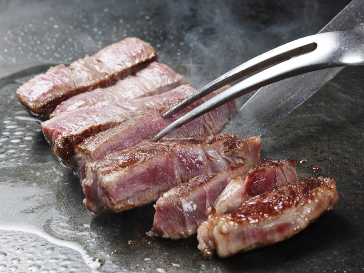 在可以感受到樹木溫暖的沉靜店內有鐵板區,廚師在客人面前烤製優質牛肉和蔬菜。