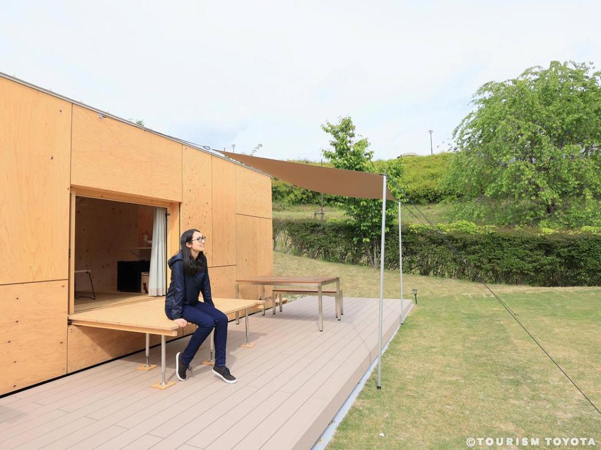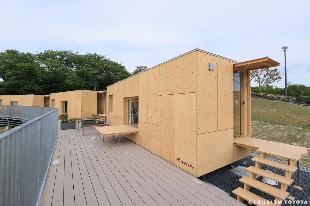 公園裡有雪峰(Snow Peak)戶外活動裝備品牌經營的餐廳和商店。下坡進入公園腹地,那裡有5個由隈研吾(1954- )設計的長方形移動小屋。隈研吾也是東京新國立競技場和法國馬賽FRAC當代藝術中心的設計者。這些名為「住箱」(jyubako)的移動小屋是他與雪峰公司合作的作品,作為公園裡的豪華住宿設施供遊客租借。附近也設有常規露營地,訪客可以從雪峰商店租借帳篷和露營裝備。